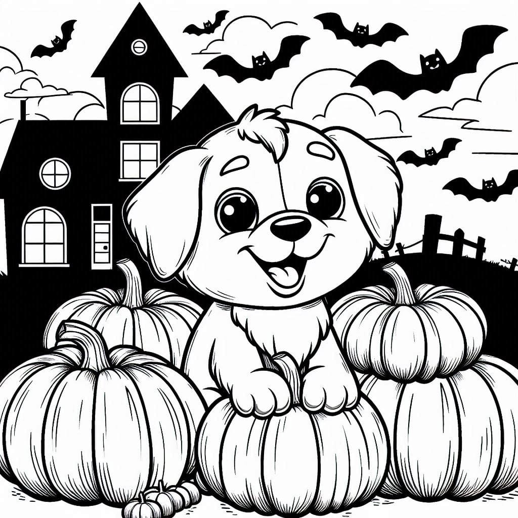 A cheerful dog nestled among pumpkins, with bats circling a haunted house in the background. My daughter loved coloring the sky purple and naming him “Midnight Trickster.” For weeks, we joked that he might sneak candy from our kitchen at night.